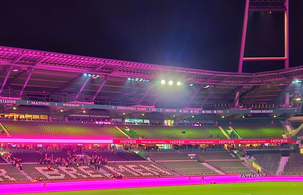Pinkifizierung des Weserstadions in Bremen zum Weltmädchentag 2025